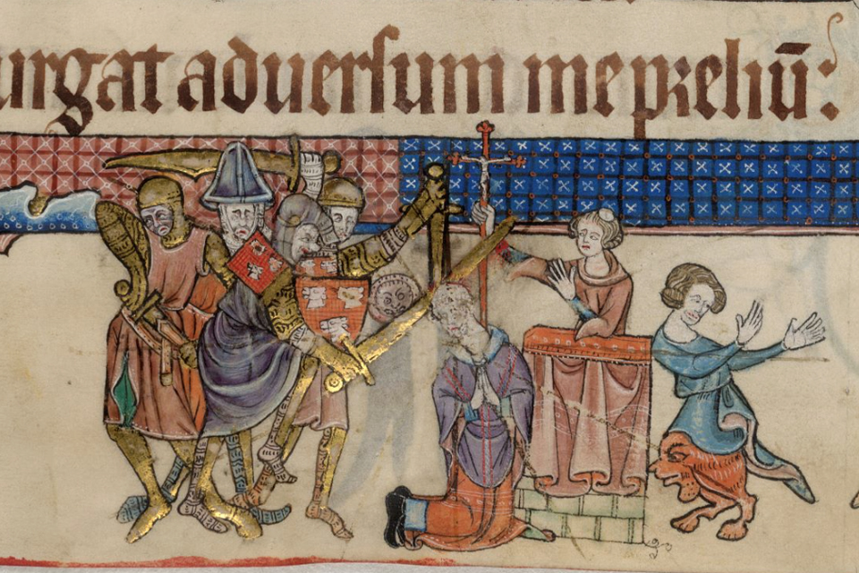However, Ralph’s brother William Fitz Stephen (1124-1191) achieved the greater fame. He is considered by many to be the same William that secured a role as personal household clerk to Thomas Becket while he was Chancellor, and rose in prominence within the English church as his master did, becoming a subdeacon to Becket who was by then Archbishop of Canterbury. He was also a legal expert. William’s relationship with king Henry II meant that he was able to secure a pardon for himself when Becket was sent into exile for 6 years. William remained close to Becket however and spent time with him in France during the latter’s exile. Both men were restored to their positions, though Becket later angered the king again; William was an eye witness to the arrest attempt that led to the Archbishop’s murder in Canterbury Cathedral in 1170.